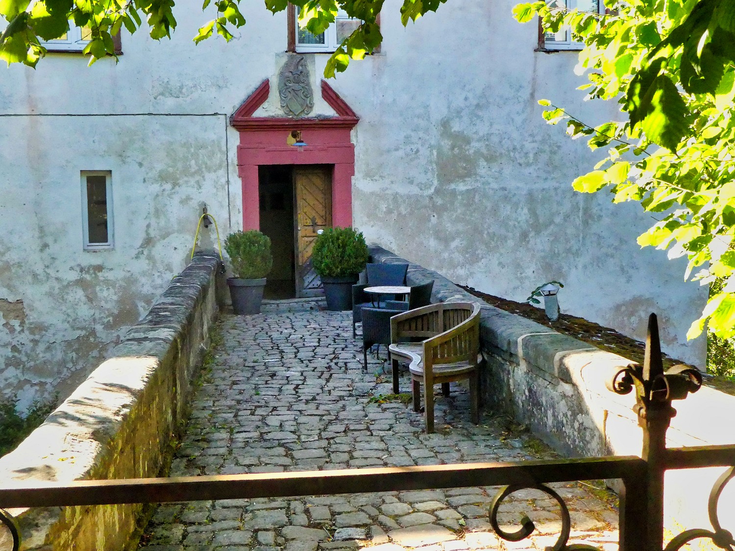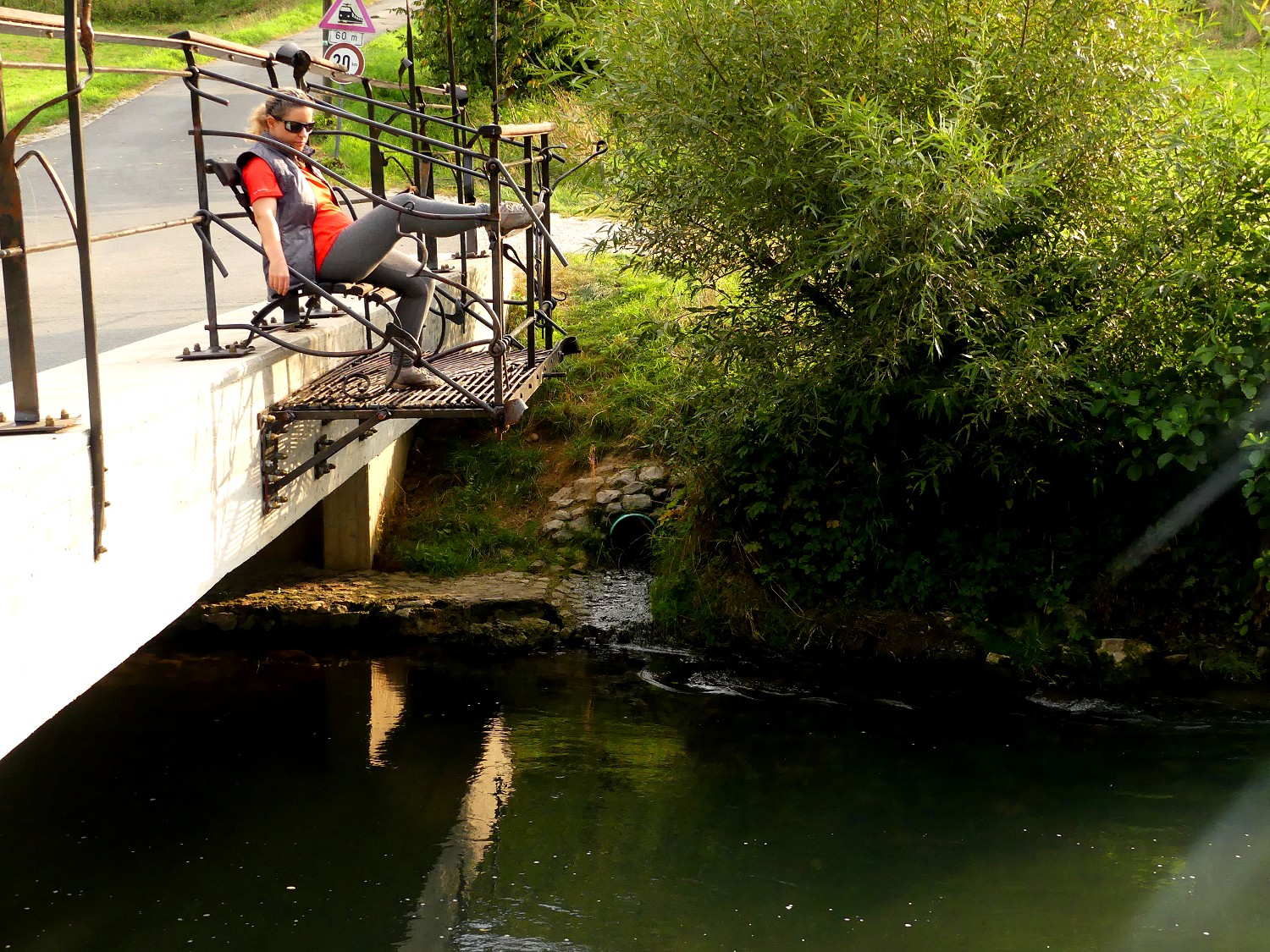 Von weitem ganz gewöhnlich, entpuppt sich eine Brücke über die Wiesent zum Dorf Haag als etwas Besonderes. Die Brücke hat einen Balkon. Auf so eine Idee muss man erst mal kommen. Das ist sicher auch für Angler ein bequemer Ansitz. Der Schmied Hubert Hunstein aus Haag hat das schmiedeeiserne Brückengeländer entworfen und gebaut.