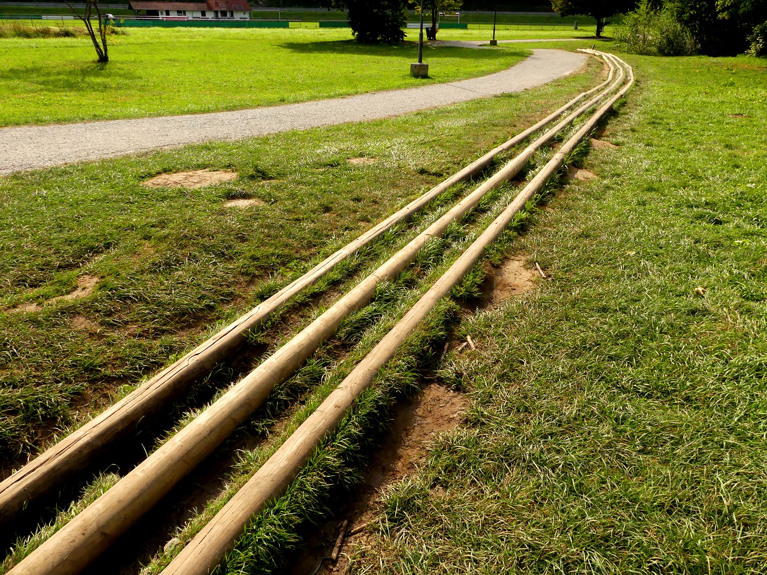 Bei einer Wehranlage im Fluss, die mit Booten nicht bewältigt werden kann, befindet sich eine Umtragestelle für Kajaks und Kanus. Zur Erleichterung dieser Arbeit hat man in der Wiese Holz-Schienen verlegt, auf denen man die Boote ziehen kann. Eine Uferpromenade lädt zu einem Spaziergang und einer Rast ein.